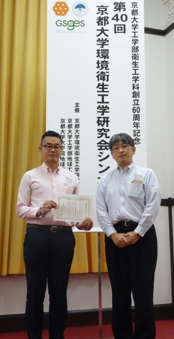 【受賞】山口武志さん・京都大学環境衛生工学研究会第40回シンポジウム優秀ポスター賞(2018年7月28日)