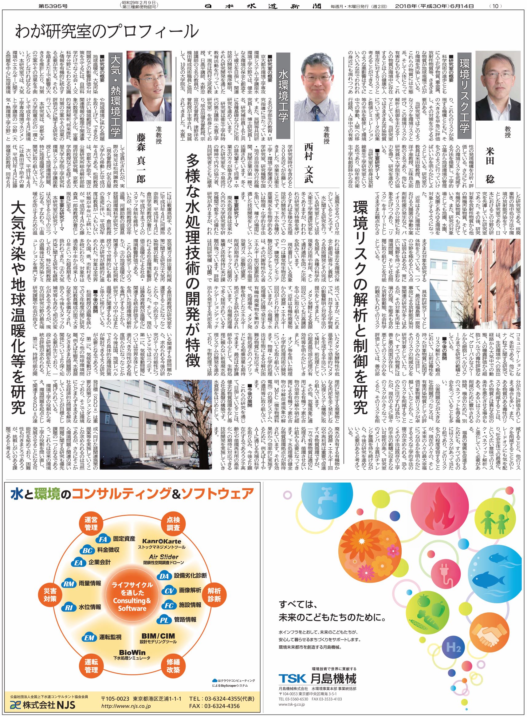 日本水道新聞から衛生工学科創立60周年関連特集が発行されました(2018年6月14日) https://www.env.t.kyoto-u.ac.jp/ja/information/diamond/ns https://www.env.t.kyoto-u.ac.jp/@@site-logo/logo_都市環境工学専攻.png 日本水道新聞から衛生工学科創立60周年関連特集が発行されました(2018年6月14日) ページ毎に拡大できます(それぞれ1MB程度)